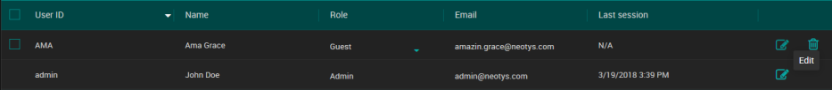 Restez sur l'onglet Internal users et localisez l'utilisateur que vous souhaitez modifier et cliquez sur le bouton Edit.