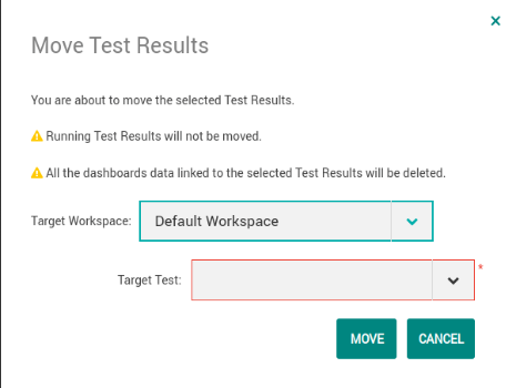 Le test ainsi que tous les résultats et le Projet associés (s'il y en a) sont également déplacés vers le Workspace cible sélectionné.