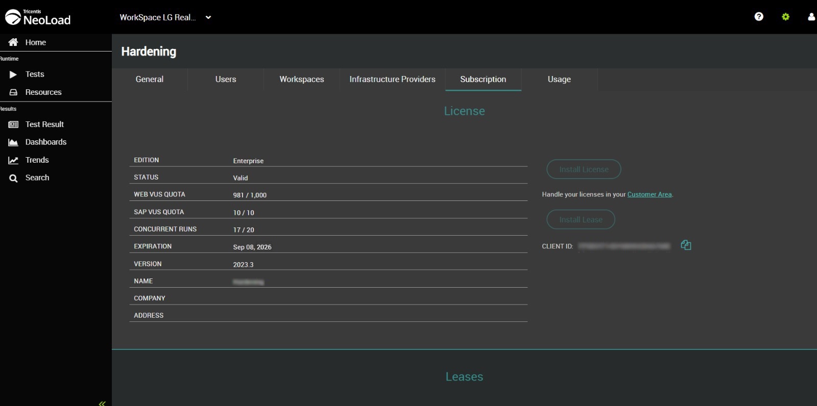 Lorsque la licence est installée dans NeoLoad Web, tous les détails de la licence sont affichés.