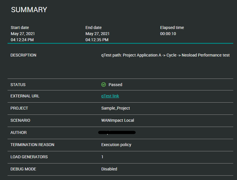 Le mode Debug était "Activé" ou "Désactivé" pendant le test Le mode Debug enregistre le contenu de toutes les requêtes et réponses exécutées pour chaque itération d'Utilisateur Virtuel contenant au moins une erreur. |