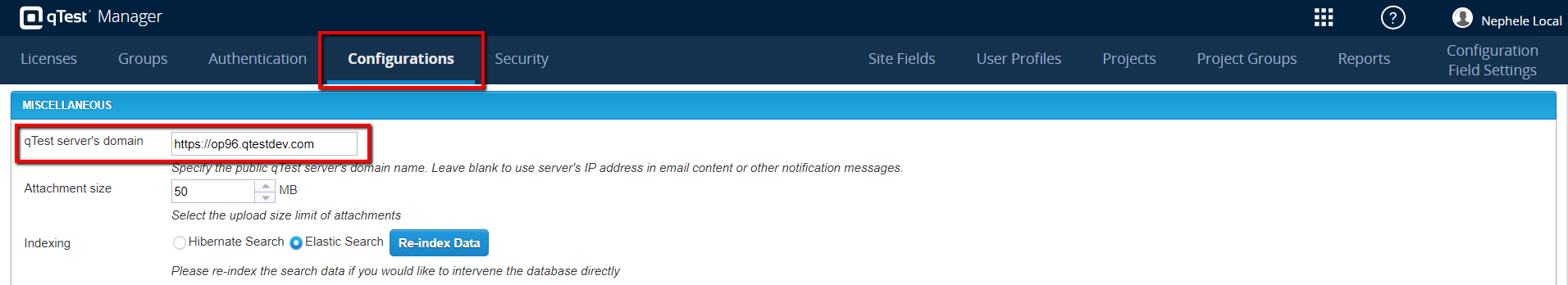 Under the Configuration page, scroll to section MISCELLANEOUS and enter the qTest URL into the field qTest server's Domain.