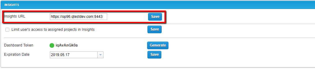 $ ./configure --insights-url "http://<IP of current machine>:<insights port>" --insights-http "<insights port>" --cluster "<IP address of qTest machine>"