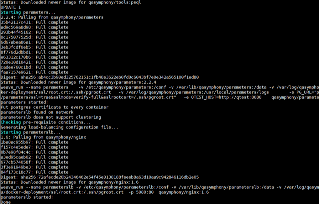 Next, start the deployment process by executing startup script which will download application images and qTest Parameters components to the Docker container. It may take a while to complete depending on your network connection.
