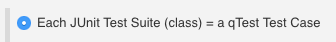 Each JUnit Test Suite (class) = a qTest Test Case: Selected by default. A qTest Test Case is created from a JUnit Test Suite (class).