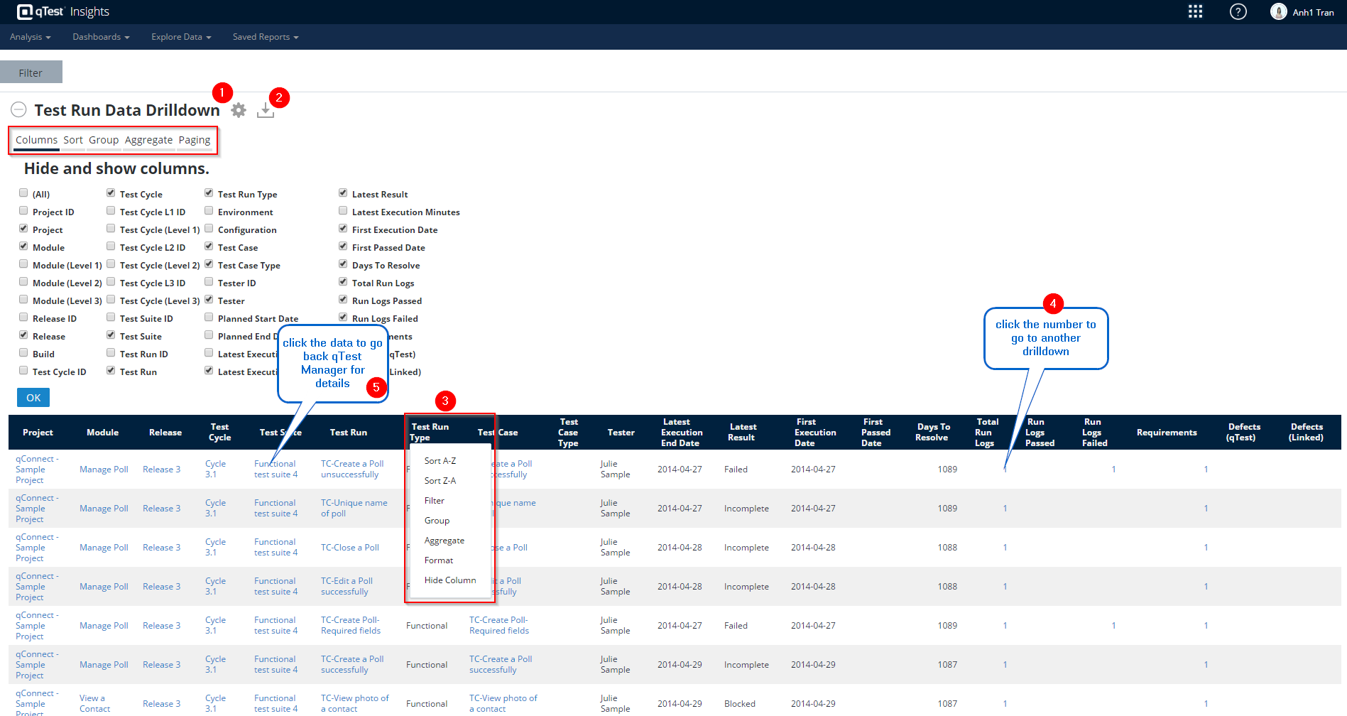 In qTest Insights, you are able to drill-down from data in the below locations:
