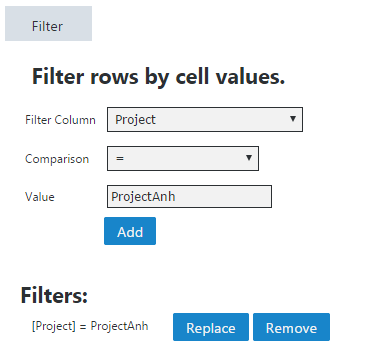 Click Filter button to open the feature. This allows you to filter data to be displayed in the data analysis grid.