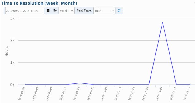 | qTest | Time To Resolution (Week, Month) | A line graph that tracks total time of resolution per week or month |