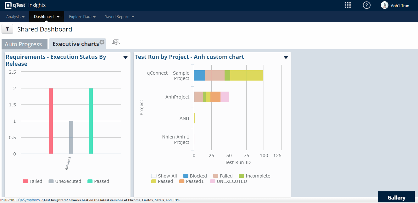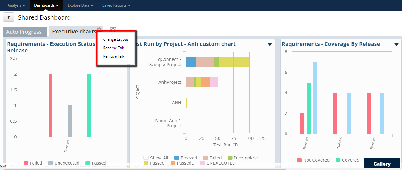 Test Execution- Custom charts from Explore Test Run, Test Run Logs, Manager Combined