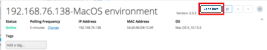 Basic information of the host, including: Host Name, Version, Status, Polling Frequency, IP Address, MAC Address, Operating System