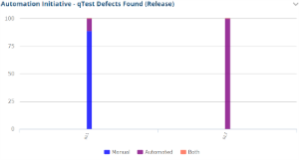 | qTest | Automation Initiative - Linked Defects Found (Release) | A stacked bar graph that shows the amount of found linked Defects that are either manual, automated, or both. This data is tracked by Release. |