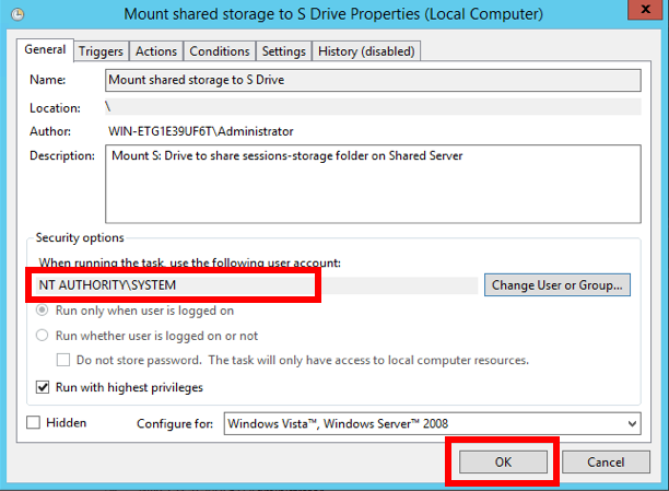 Check the check box Run with highest privileges.