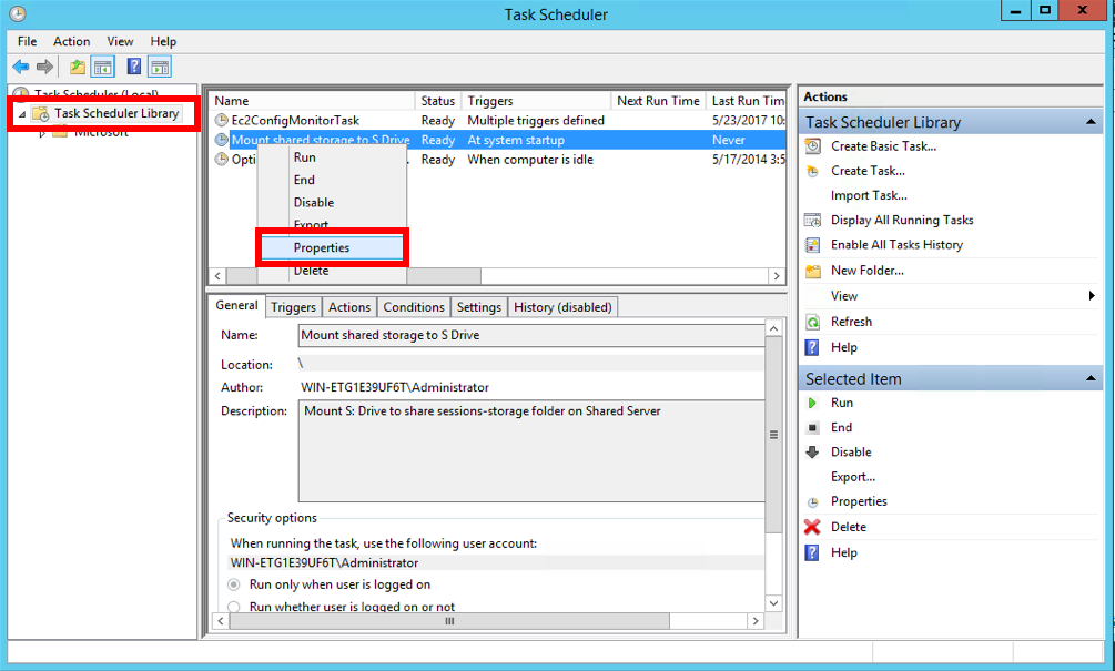 Next, you will create a task from the Task Scheduler that will execute your batch file at system start up.