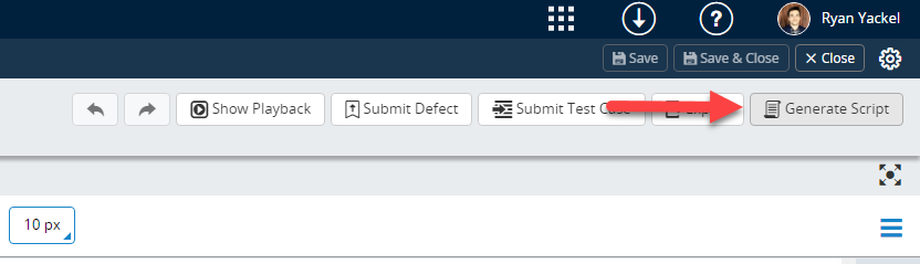 In order to generate an automated script for a web session, click on the Generate Script button in editor toolbar, as below: