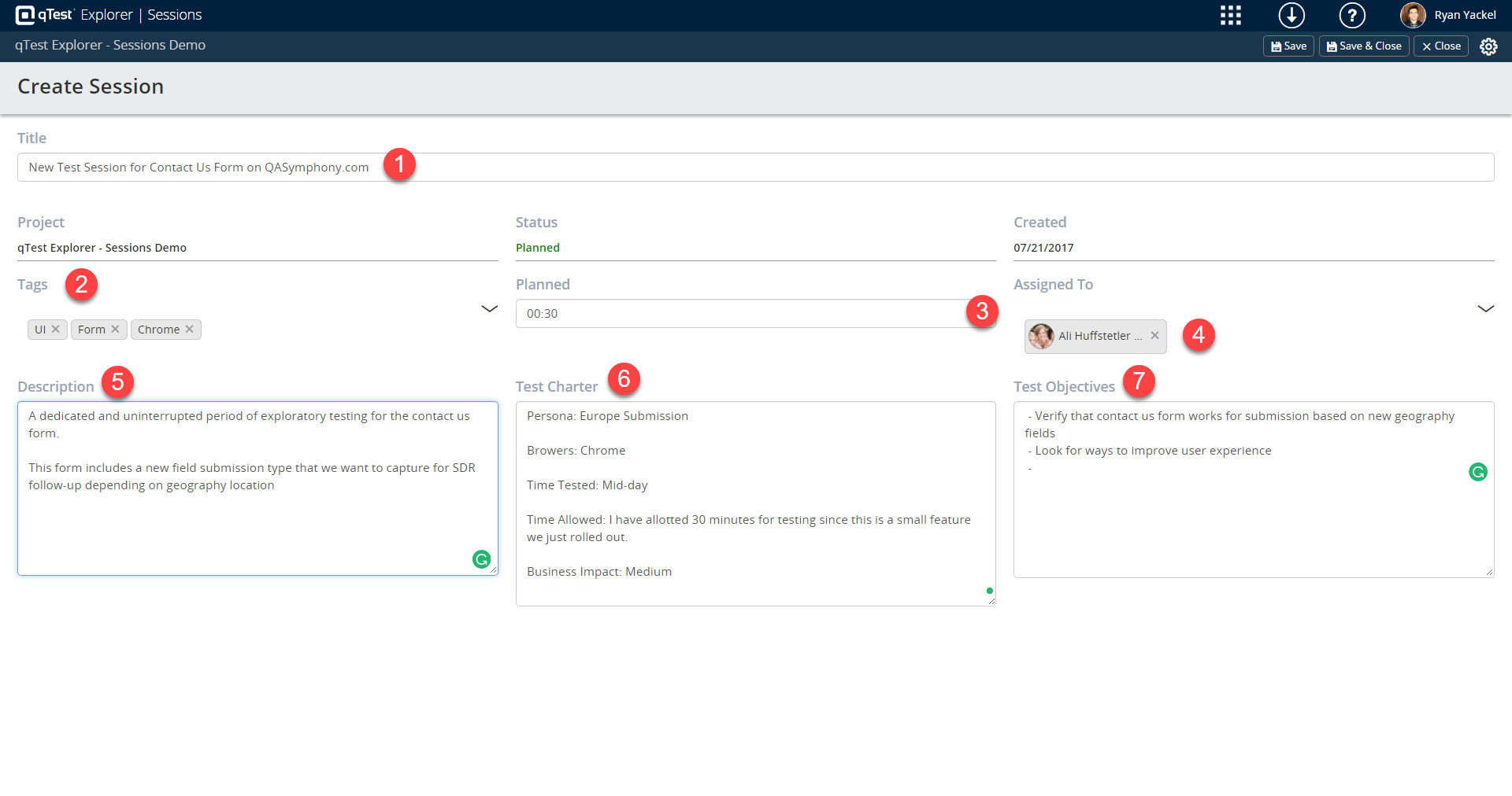 A test session represents an uninterrupted period of time that testers carry out during their testing activities. Our Sessions module allows teams to create a detailed or abstract session based charters to guide their recorded session with qTest Explorer.