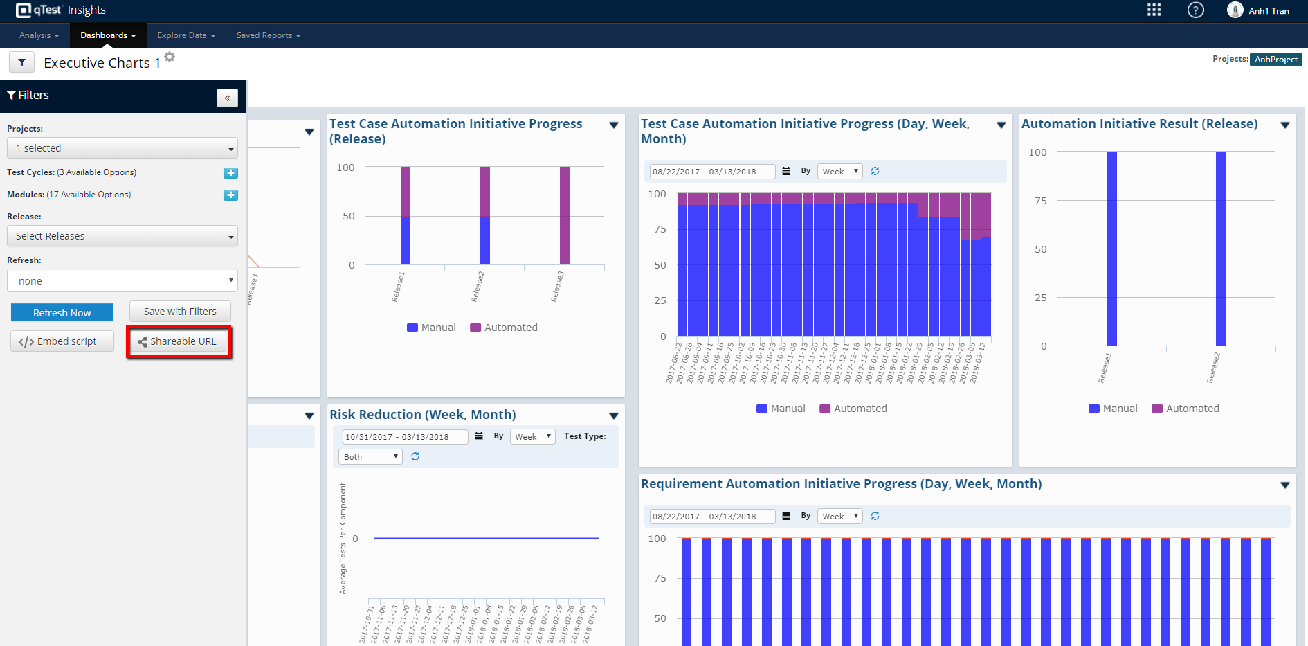 At any time you can generate a new, secure Dashboard Token that will replace the previously created Dashboard Token. The new token will be used by qTest to generate a shareable URL.