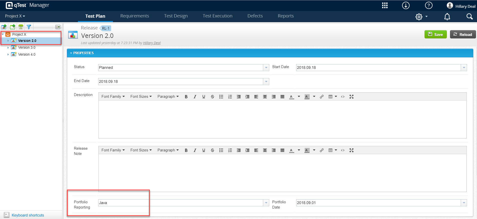 Example: Project X used Java for one release named Version 2.0 while using C++ for the second Release named Version 3.0. Therefore, the Java value is assigned to Release 2.0 on the Test Plan page, and the C++ value is assigned to the Release named Version 3.0.