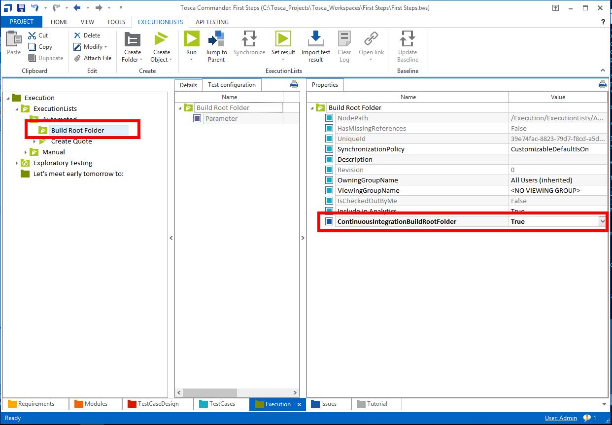 ContinuousIntegrationBuildRootFolder property for your execution results If you are not familiar with Tricentis Tosca, refer to the Tricentis Tosca documentation to create the properties above.