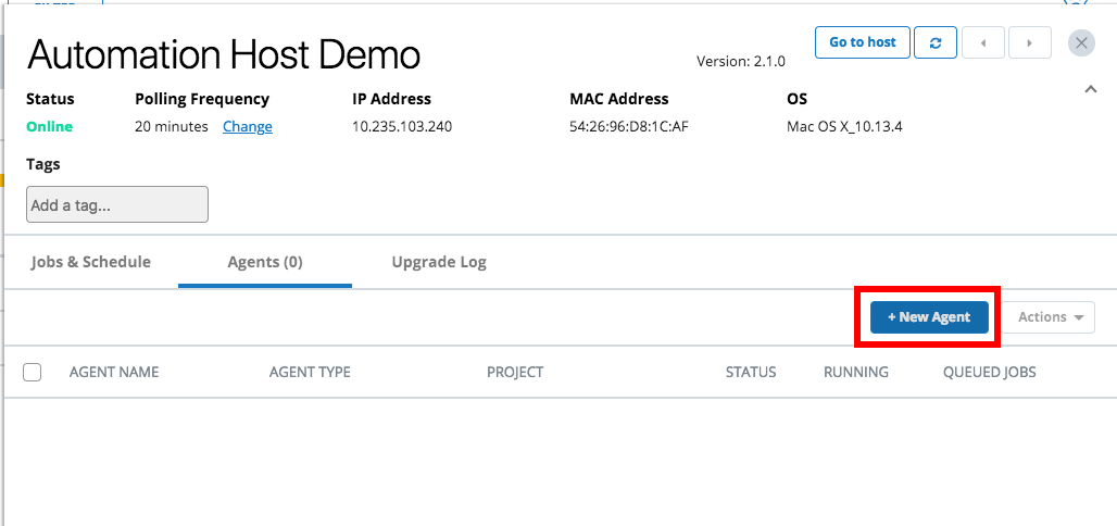 From Launch, open the host machine where you want to create the new agent.