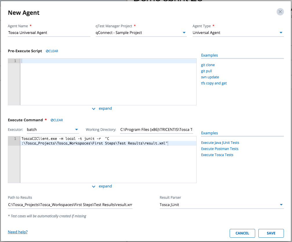This article will create a Universal Agent to execute a sample Tricentis Tosca project created with Tosca Commander.