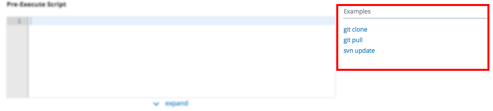This section allows you to generate snippets of scripts that will execute when the Universal Agent kicks off its execution. Select the appropriate link under the Examples section to generate the scripts to the Pre-Execute Script editor.