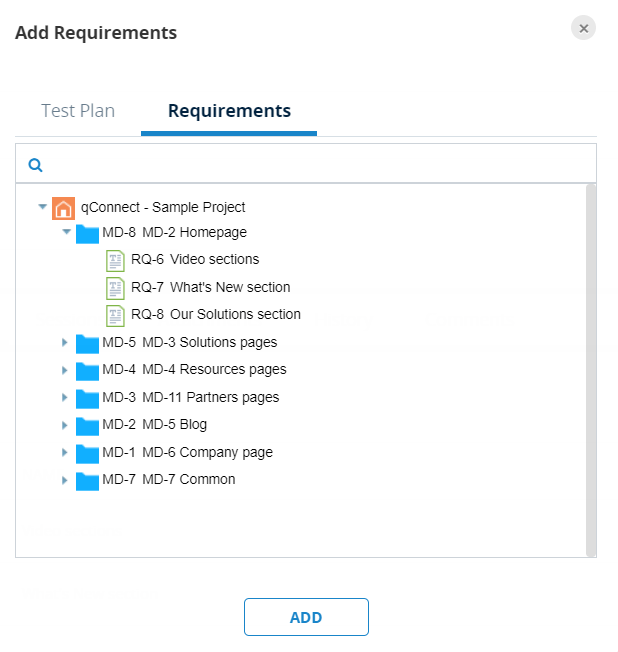 Select your Test Case that you would like to link to your Requirement. Select Add.
