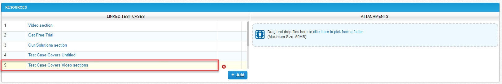 The created Test Case is automatically linked to the Requirement and displays in the Linked Test Cases section in the Resources area of the Requirement page.