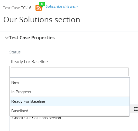 Test Cases will go through life cycles during the course of testing. These life cycles are marked and tracked by Test Case statuses. These statuses can be viewed and edited in the Test Case Properties section on the Test Case page.
