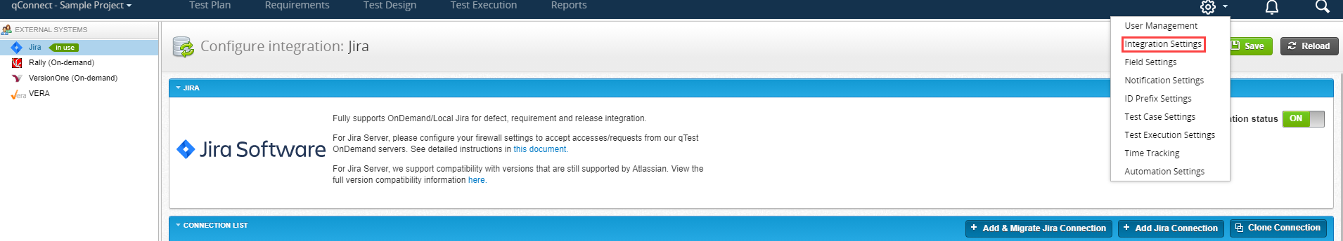 Integration Settings are used to set up Requirement and Defect integrations with popular agile ALMs and other tools. For more in-depth information on integration settings, refer to these articles for your specific integration: