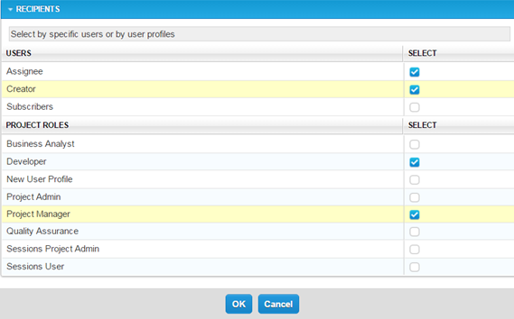 Subscriber: The user who subscribes to the object. You can subscribe as many project users to an object as you want.