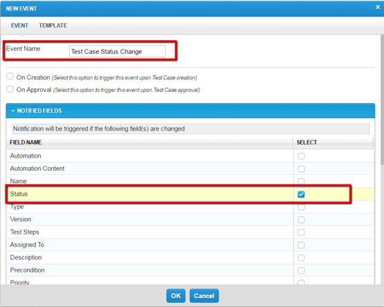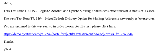 Select OK. When the status of the Test Case is changed, a notification email will be sent to the specified recipients. For example: