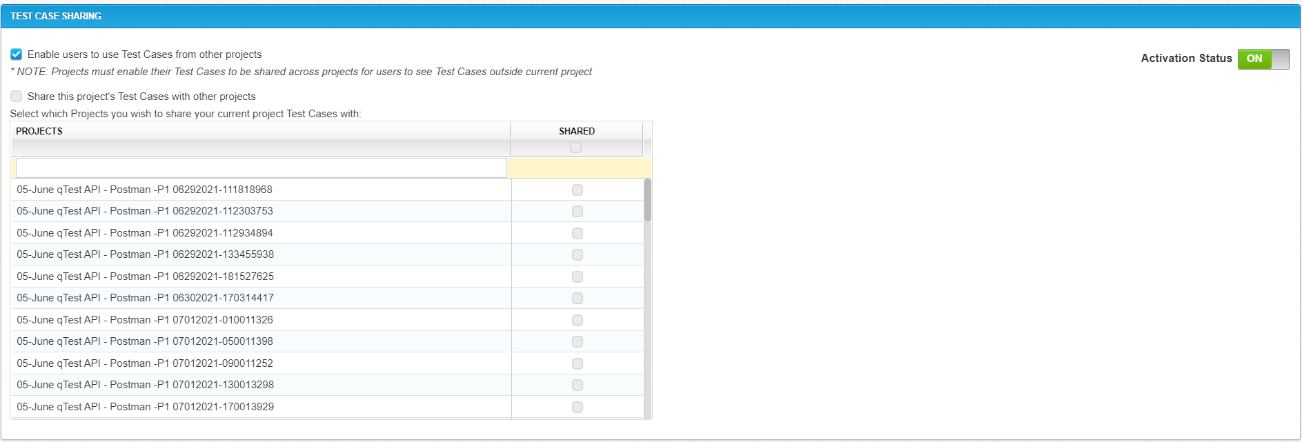 qTest features the ability to create Test Runs in one project from others' shared Test Cases. For more information, refer to Reuse Test Cases.