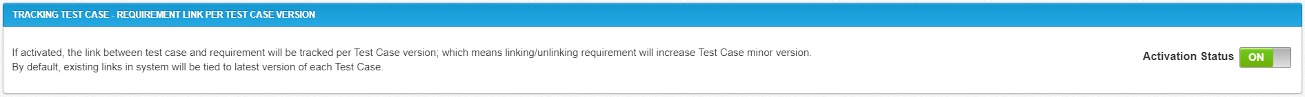 This section is used to track links between Test Cases and Requirements by Test Case version. Activating this option allows you to sort Requirements based on version. When this feature is activated, linking or unlinking Requirements will increase the Test Case's minor version.