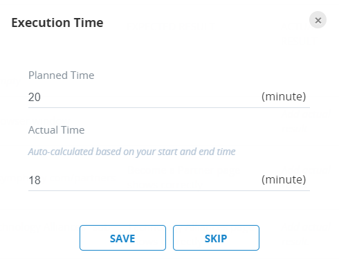 In the Actual Time field, enter the number of minutes that the execution actually lasted for.