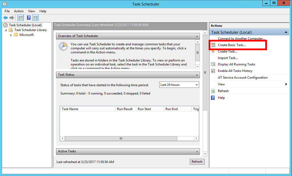 Open the Task Scheduler application and select Create Basic Task in the right panel.