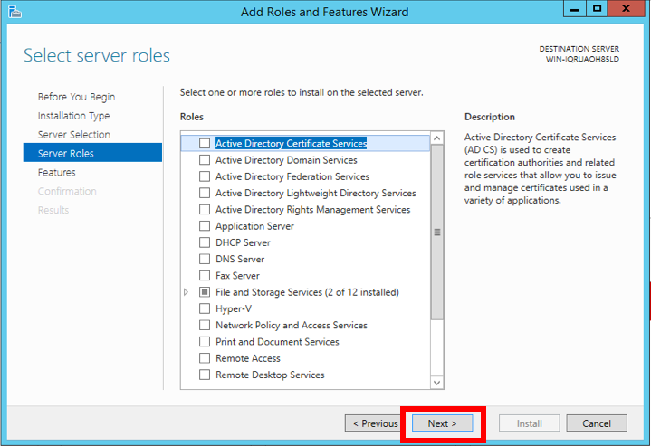 On the Select server roles screen, click Next.
