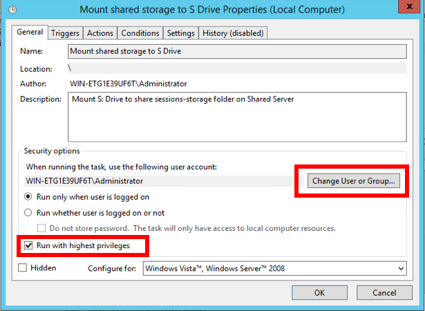 Check the check box Run with highest privileges.
