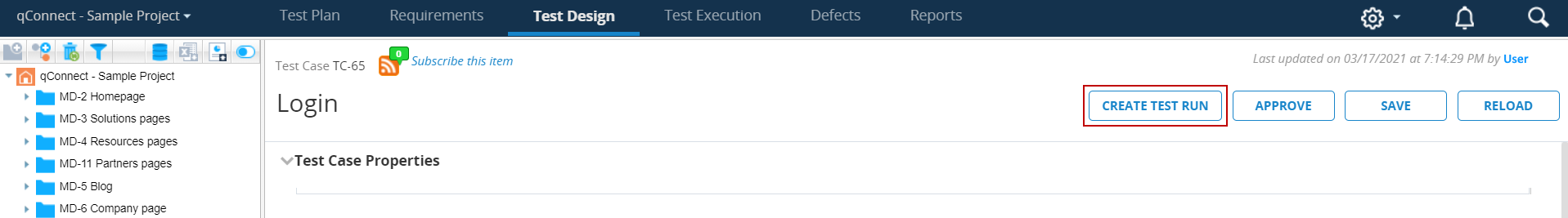 On the Test Case screen, click Create Test Run.