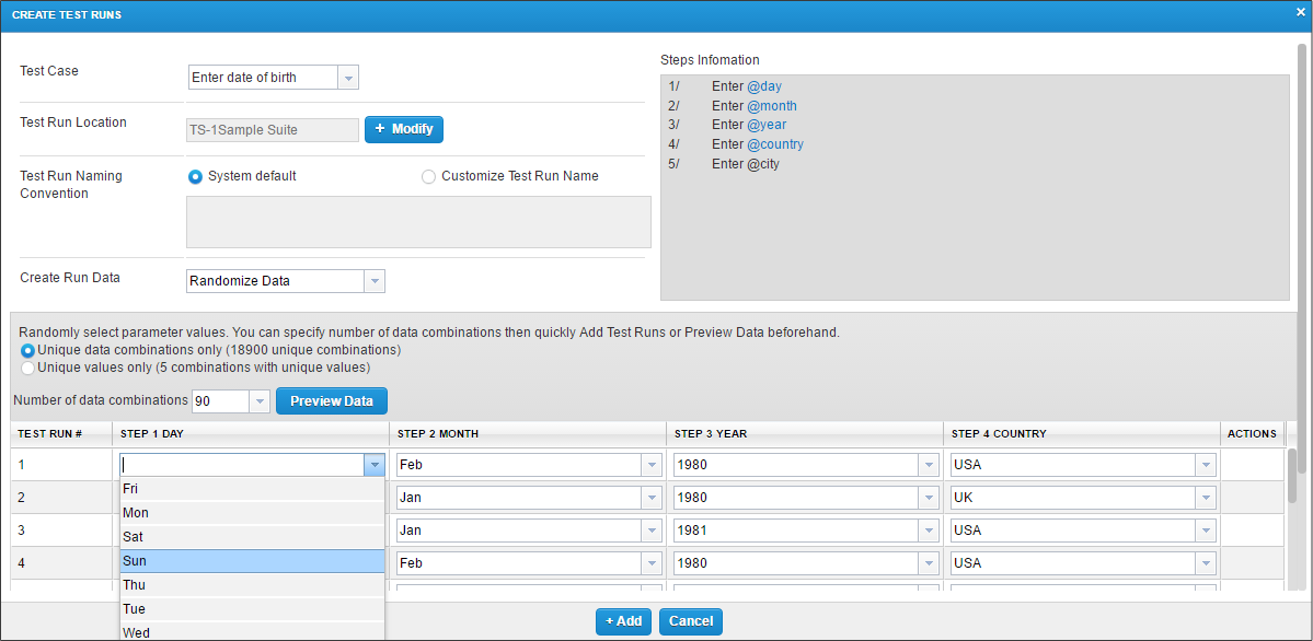 In the Number of data combinations field, select the number of Test Runs that you want to generate.