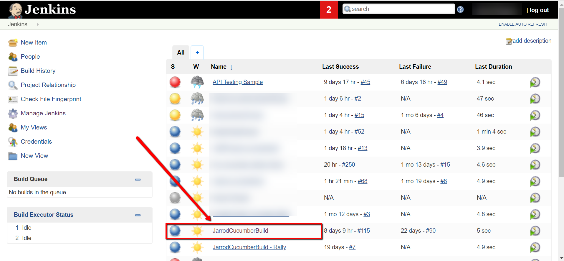 The Jenkins Job Name is the name given to the project that builds and executes your automated tests.