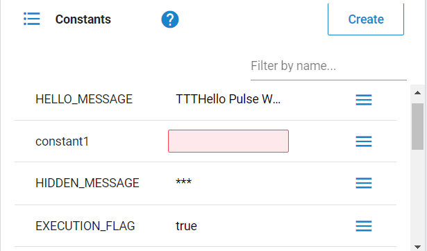 The Constants entered here will be exported when you select the Export icon on the Pulse Rules page. These will export the name, but you will need to enter new values when exporting into a new project. Refer to Pulse Constants for more information on Pulse Constants that are used in the sample Pulse Rules.