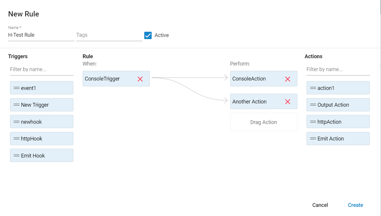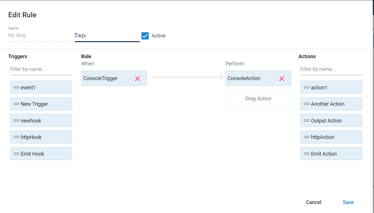 The Edit Rule dialog opens, and you can drag/drop the Triggers or Actions you want to edit.
