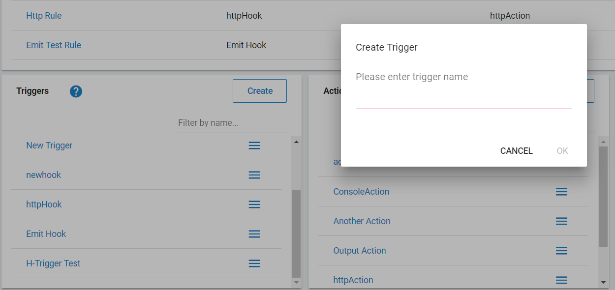 Enter a Trigger name in the Create Trigger dialog. Select Ok to save.