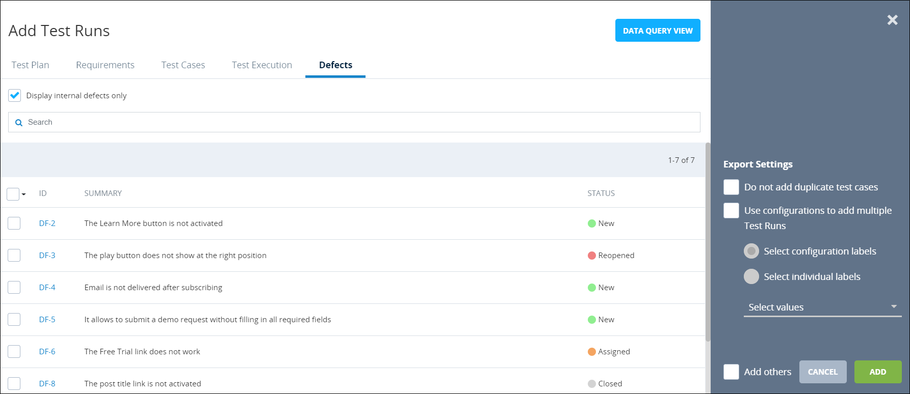 Create multiple Test Runs with Parameter values from dataset: POST