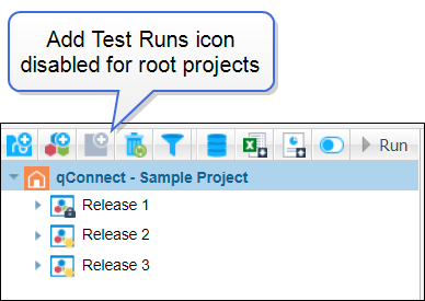 Test Runs can no longer be added directly under root projects. To prevent this action, the Add Test Runs icon