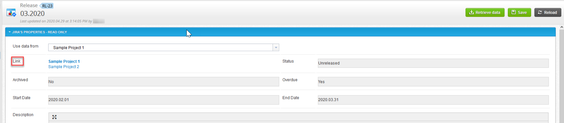 - A new field will be added to the qTest release (e.g. Jira Project), showing from which Jira projects the release originated