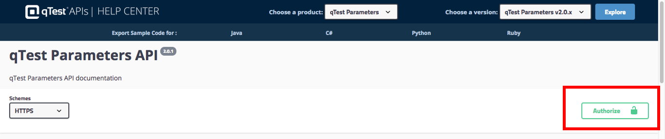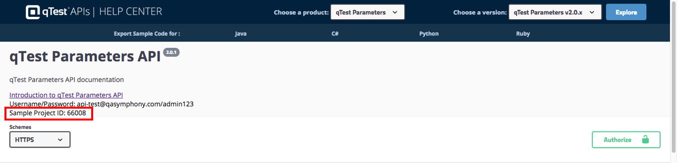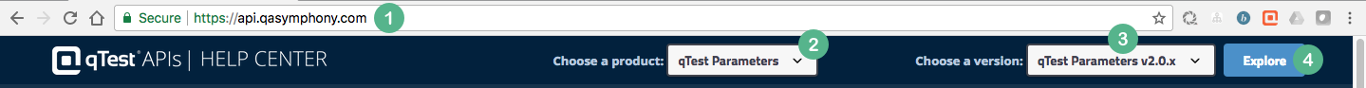 From the top of the API home page, select qTest Parameters from the Choose a product field.