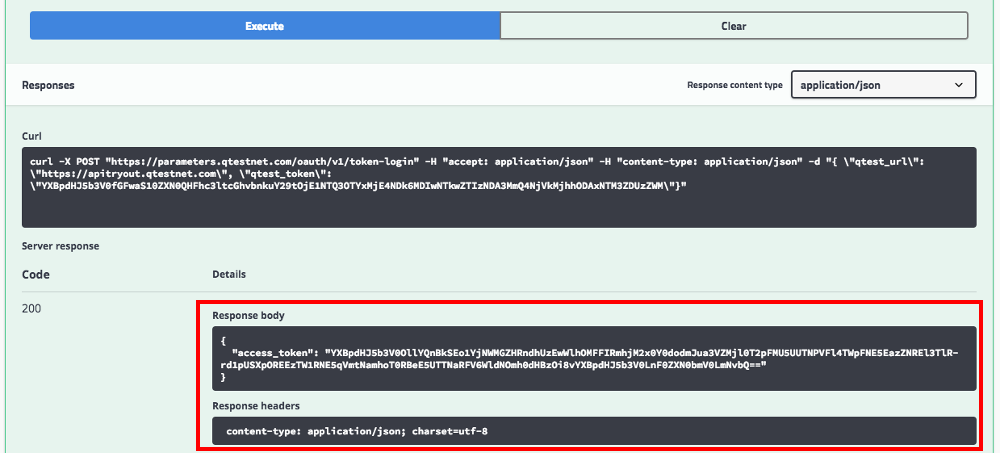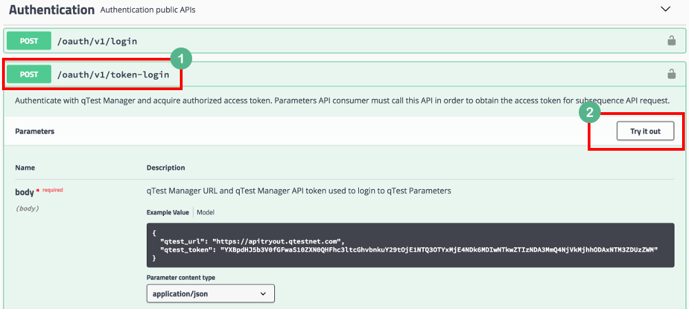 API endpoint: https://parameters.qTestnet.com/oauth/v1/token-login