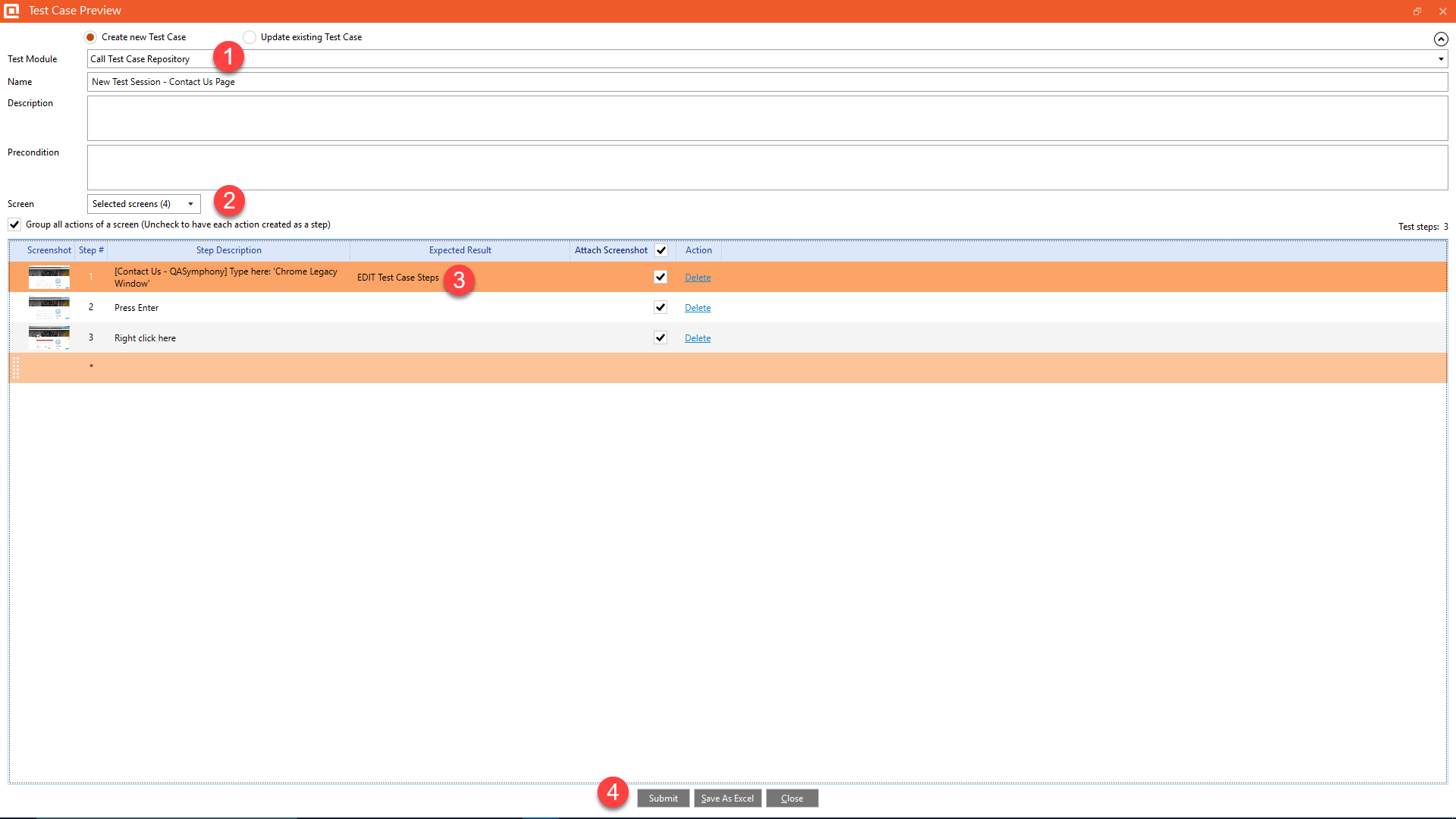After reviewing screen captures and make more annotations, users can quickly submit defects including all the steps with screen captures of their session.