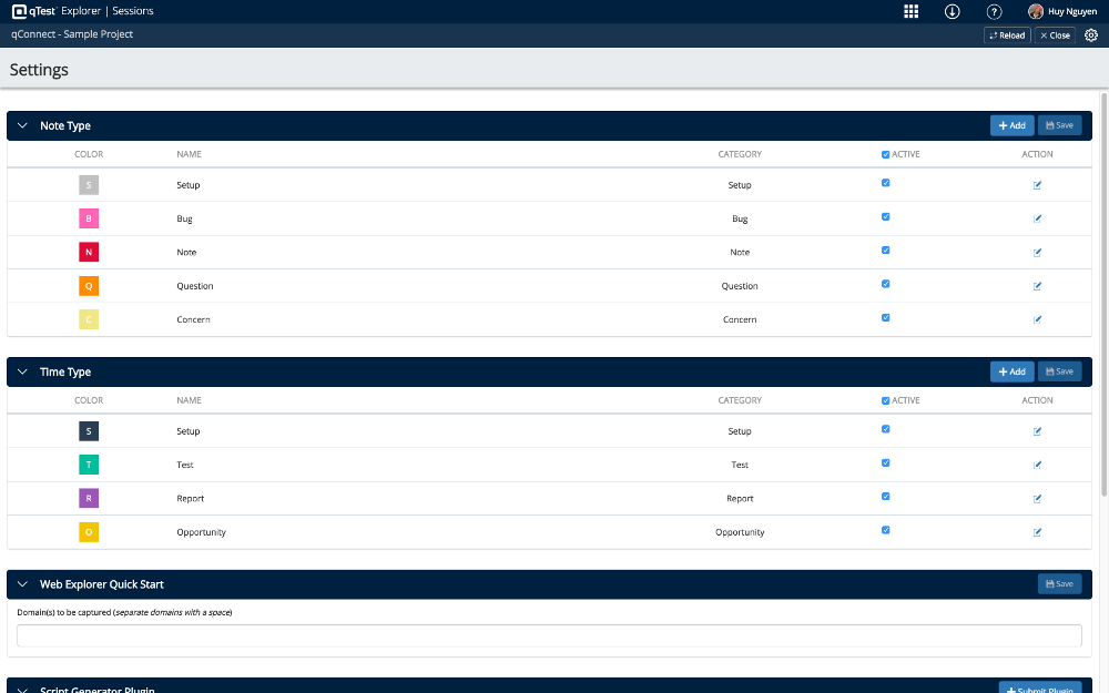 Note types are used by qTest Explorer when you execute a session and want to add notes in order to make your session more descriptive. In Settings, you can create additional note types that fit your need and they will be available in qTest Explorer applications when you execute a new recording session. You can also deactivate specific note types if you find they are not relevant.