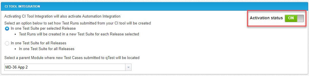 1. In one Test Suite per selected Release: One Test Suite is created under each selected Release on qTest Plug-in's configuration in your CI server. This is the default option.